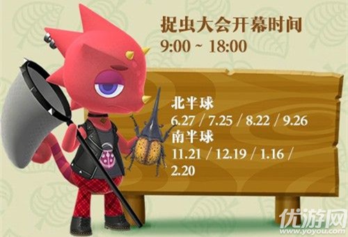 动物森友会捕虫大会怎么玩?动物森友会中有很特别的比赛,捕虫大赛就是其中一项,这个活动和钓鱼大赛的玩法模式差不多。下面就是小编为大家带来的动物之森捉虫大会玩法攻略了,大家都来看看吧!动物森友会捕虫大会怎么玩捉虫大会是期间限定活动,在北半球6月、7月、8月、9月;南半球11月、12月、1月、2月的第二个