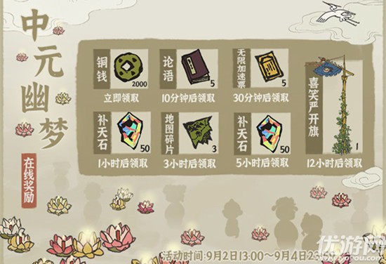 江南百景图中元幽梦活动怎么玩?江南百景图在今天开启了中元节福利活动“中元幽梦”,这是一个很简单的登陆领好礼活动,官方会根据玩家登陆游戏的时长分多次发放奖励。下面就是中元幽梦活动玩法奖励介绍了,一起来看看吧!江南百景图中元幽梦活动怎么玩【活动预告】中元幽梦活动即将开启!9月2日13:00起,累计在线时