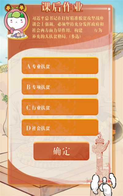 总*书记在打好精准脱贫攻坚战座谈会上强调,必须坚持充分发挥政府和社会两方面力量作用,构建什么互为补充的大扶贫格局?这是青年大学习第十季第三期课后作业第一题,小伙伴们知道这道题的正确答案是哪几个选项吗?下面就让我们一起来看看这道题的答案吧!青年大学习第十季第三期课后作业答案课后习题第1题问题:总*书记