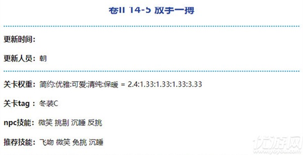 奇迹暖暖放手一搏怎么搭配?这个关卡中没有必做的图纸部件,玩家可以根据自身喜好和现有服饰部件自由搭配。下面就是编编为大家整理的奇迹暖暖卷二14-5放手一搏完美搭配方案了,小伙伴们都来看看吧!奇迹暖暖放手一搏搭配攻略第五关放手一搏服装发型:荒原珠·金〔定·进·公/舳〕连衣裙:细雪梅庭·珍稀〔进·小铺〕(