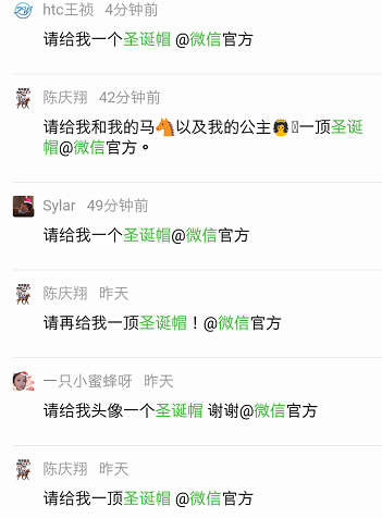 朋友圈@微信官方头像可以加圣诞帽吗?朋友圈@微信官方要圣诞帽我怎么没有?是不是还有好多小伙伴不知道呢?那些还知道的快来和小编一起看看吧被朋友圈的火热炸起来的小编我,马不停蹄扒出了整件事——原来这是腾讯的天天P图团队的无心之举,没想到竟然闹出了一场“乌龙”。23号夜里,一些网友用“一键圣诞帽”H5帮好