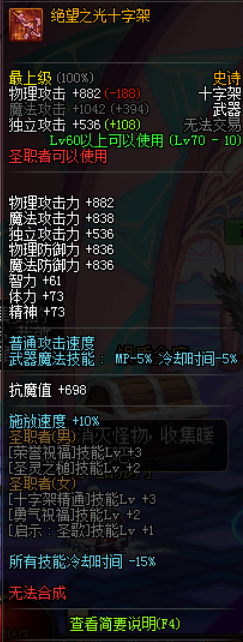 DNF圣职者史诗之路武器选什么最好?DNF圣职者史诗之路武器推荐、是不是还有好多小伙伴不知道呢?那些还知道的快来和小编一起看看吧圣职者(奶爸、奶妈)绝望之光十字架审判流奶爸,圣灵之槌+2。辅助流奶爸,荣誉祝福+3。奶妈,勇气祝福+2。所有技能冷却-15%也是一大亮点。苍木之冥奶爸:荣誉祝福+5.奶妈