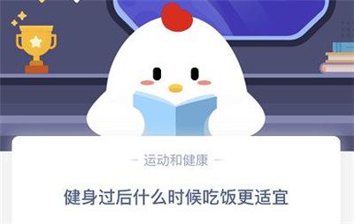 健身过后什么时候吃饭更适宜?半小时后、立即吃。这是蚂蚁庄园2020年11月6日的题目,很多小伙伴都有健身的习惯,那么在锻炼之后多长时间吃饭最好呢?正确答案是半小时后还是立即吃呢?有兴趣的用户都来看看吧!蚂蚁庄园11月6日每日一题答案问题:健身过后什么时候吃饭更适宜?半小时后立即吃答案:半小时后答案解
