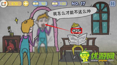 史上最贱暴走游戏第2-17关怎么通关;史上最贱暴走游戏第2-17关通关详细讲解;史上最贱暴走游戏第2-17关攻略;他说自己太帅了!那我们就把看报纸的老人眼睛拉过镜子哪里吧!