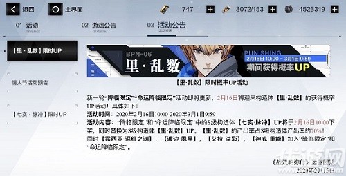 战双帕弥什里乱数限时UP活动2月16日开启