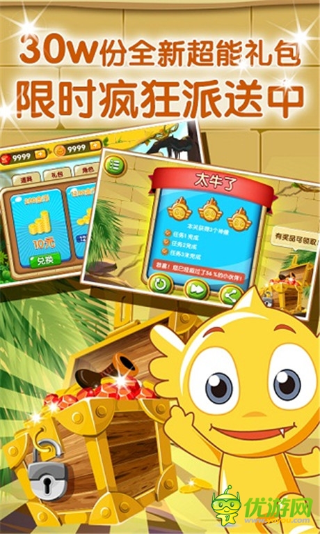 金秋十月,来自外星的可爱麦咭携同名大电影为玩家朋友们送好礼啦!超人气亲子密室闯关手机游戏《疯狂的麦咭》倾情推出每个价值40元的超能礼包30万份!不但有经典道具隐身衣和加速鞋赠送,还有最新道具时间暂停,让你秒变都教授;更有小燕子不惧火灼,助你一路闯关夺得宝藏!麦咭大电影《81号农场之疯狂的麦咭》也将于