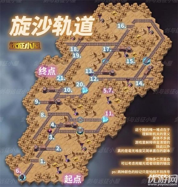 剑与远征旋沙轨道怎么过?旋沙轨道是最新推出的奇境漫游副本,玩家通过26-20关卡,切回音峡谷进度超过60%即可进入副本。下面就是奇境漫游副本旋沙轨道通关图了,想要拿走全部奖励的小伙伴们都来看看吧!剑与远征旋沙轨道全宝箱攻略2021上线时间:5月17日左右解锁方法:奇境漫游副本-沙旋轨道,玩家通关26