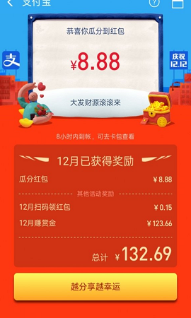 支付宝瓜分15亿开奖,今日十点,支付宝到店付款15天瓜分15亿活动正式开奖,用户只要在12月到店消费2元以上满15天即可瓜分15亿红包。下面一起和小编来看看支付宝瓜分15亿开奖介绍。支付宝到店付款15天瓜分15亿活动正式开奖介绍支付宝于去年12月开启了这个瓜分活动,用户在12月内累计有15天你到店付