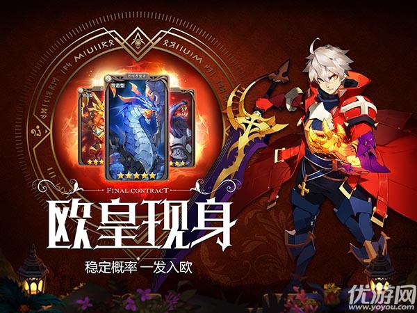 超欧气回合策略手游——《最终契约》今日11:00正式开启全平台公测!该作此前凭借良心的掉率、独特的题材、丰富的策略,获得了AppStore双频道推荐。今日公测,《最终契约》还要在游戏内、现实中都为大家带来更强的“欧气”!【欧皇现身,登录送SSR】人人做欧皇,就是《最终契约》的终极目标!在《最终契约》