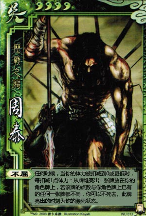 一血,不屈3的新周泰,只有一张手牌杀无装备,因质疑失败而被新于吉缠怨