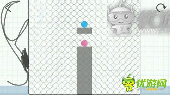 【脑点子】第463关怎么过;脑点子第463关怎么通关;脑点子第463关通关攻略详解;463画一个这种形状的东西,把前面画重一点让他向右倒,画完之后在左边马上画个能挡住球的东西,运气好的话两个球在空中就能碰住