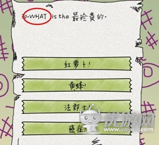 【坑爹么么答】第30关怎么过;坑爹么么答第30关图文详解;坑爹么么答第30关图文攻略;坑爹么么答全部关卡通关图文:第三十题:题目是陈述句,WHAT就是最珍贵的,点击题目中的WHAT