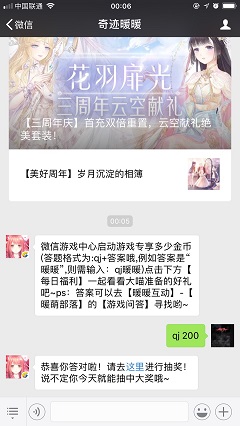 微信游戏中心启动游戏专享多少金币,这是奇迹暖暖微信公众号2018年5月18日每日一题问题,今天的答案可是非常简单的,小编这就为大家分享下微信游戏中心启动游戏专享多少金币的答案,希望大家喜欢。奇迹暖暖2018年5月18日每日一题问题微信游戏中心启动游戏专享多少金币?(答案各式为qj+答案哦,例如答案是
