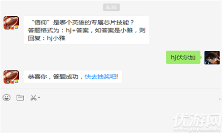 “信仰”是哪个英雄的专属芯片技能?答题格式为:hj+答案,如答案是小雅