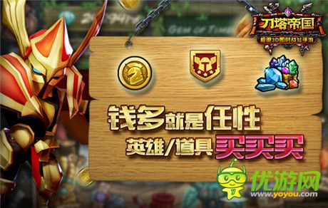 《刀塔帝国》是一款极限3D即时战斗手游,3D画面精致且视角可360度自由旋转,搭配由游戏明星录制的专业英雄配音,将给广大家带来极致的声光盛宴。在众多独创新颖玩法下,诞生了围绕不同玩法所衍生的多样化货币系统,玩家可以畅玩每一种特色玩法,并赢得相应奖励币来换取各种奖励。钱多就是任性英雄/道具买买买游戏货