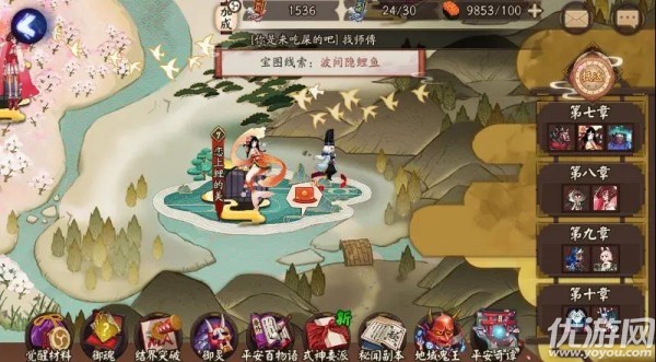 阴阳师波间隐鲤鱼在哪里?“波间隐鲤鱼”是阴阳师宝图线索之一,很多玩家都不理解这句话的意思,其实人家已经很清楚的告诉我们宝箱位置了,下面就是宝图线索波间隐鲤鱼位置介绍,一起来看看吧!阴阳师波间隐鲤鱼在哪里阴阳师波间隐鲤鱼线索对应位置:宝图线索“波间隐鲤鱼”在第7章【恋上鲤的美】的附近,玩家走到这里再根