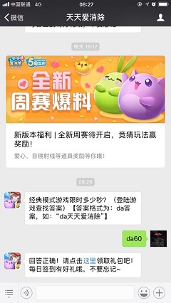 经典模式游戏限时多少秒?这是天天爱消除微信公众号2018年7月25每日一题问题,这是考验玩家对经典模式玩法的了解,小编这就为大家分享下经典模式游戏限时多少秒答案,希望对大家有帮助。2018天天爱消除7月25每日一题问题经典模式游戏限时多少秒?2018天天爱消除7月25每日一题答案【答题格式为da+答