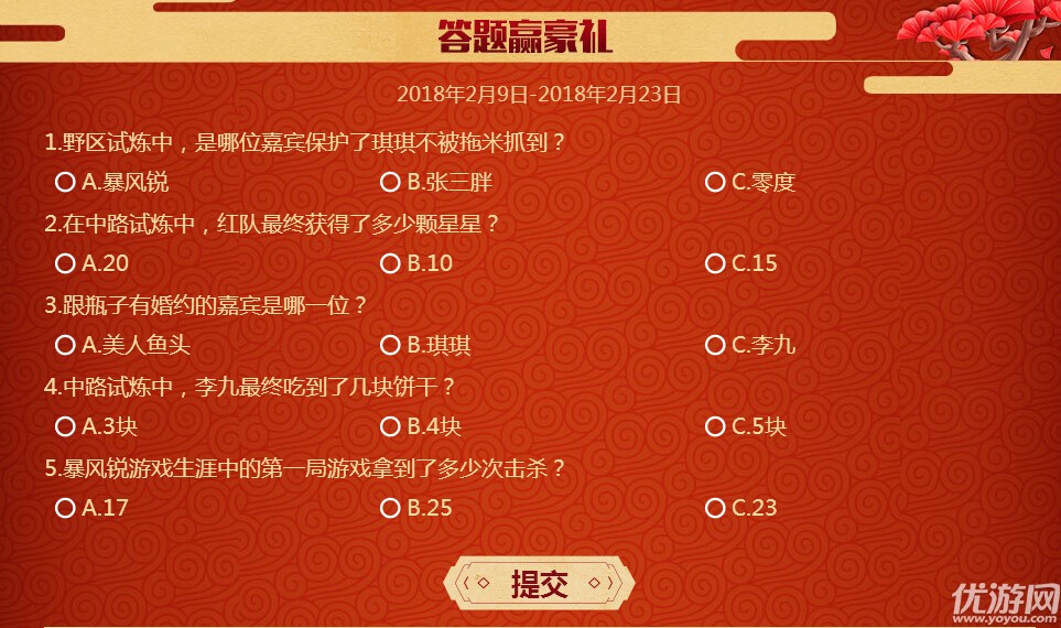 王者荣耀王者耀新春答题答案汇总、王者耀新春答题答案大全、是不是还有好多小伙伴不知道、那些还不知道的小伙伴快来和小五一起看看如上图所示,王者耀新春将于明天开启播放,2018.2.9日的8点。同时会开启王者耀新春的答题活动,点击答题赢好礼。王者耀新春地址 不知道这个答题是不是和现在流行的答题分*活动一样