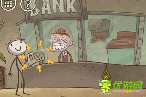 脑筋急转弯燃烧吧大脑第26关怎么通关;脑筋急转弯燃烧吧大脑第26关图文通关攻略分享,赶快来看看吧;点击小人手中的支票交给柜员,数秒后柜员后面的垃圾桶会出现箭头,这时候点击旁边墙上的扫码的机器即可。