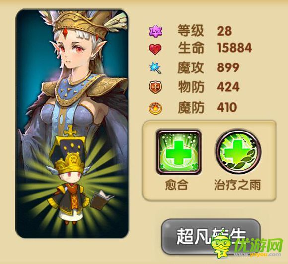 少年勇者团牧师怎么样;少年勇者团牧师详解;当等级达到30级时可转职为牧师职业,愈合技能单体治疗,治疗之雨全体恢复。愈合(主动):瞬间愈合伙伴的伤口,对生命比例最低的友方单体回复,攻击力的生命值并且在2秒内回复目标队友10%的最大生命值。治疗之雨(SP):召唤治疗之雨,对友方全体回复攻击力的生命值。