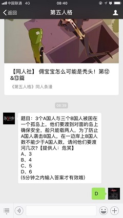 题目:3个A国人与三个B国人被困在一个孤岛上,他们要渡到对面的岛上确保安全,船只能载两人,为了防止A国人袭击B国人,在一边岸上B国人数不能少于A国人数,请问他们要渡河几次,这是第五人格微信公众号线索笔记每日一题的问题,相信不少小伙伴都非常喜欢这种判断类型玩法,小编这就为大家分享下第五人格2018年7
