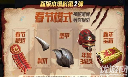 绝地求生刺激战场新年宝箱在哪?新年宝箱将在春节时候正式上线刺激战场,玩家们可以前往战场进行获取哦,只要找到宝箱玩家还可以获得一系列的奖励。下面小编就来给大家介绍下新年宝箱的位置。绝地求生刺激战场新年宝箱位置介绍1、刺激战场的新年宝箱只能在春节模式中出现。2、春节模式在海岛地图和冰封雪地概率出现。3、