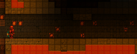 今天小编为大家带来猎户座的沙盒石像鬼与地图boss详解:石像鬼号角在靠近boss时,会往某个方向飘星星,跟着那个方向走就可以。巨型僵尸的位置比较随机,但是火焰傀儡的位置固定是在熔岩层的左下角(靠近左边)的三个类似这样的地方中(如下图)。因此可以从地图最左侧往下挖,搭一路梯子,到时候拿着石像鬼号角肯定