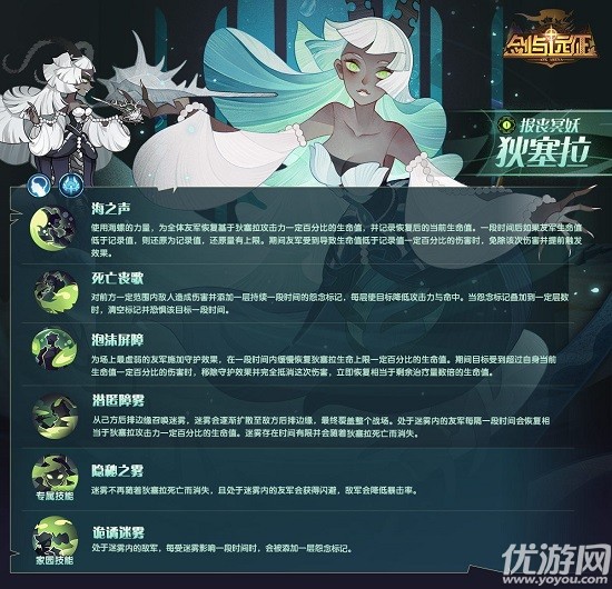 剑与远征狄塞拉值得培养吗?1.63版本更新后亡灵阵营将迎来又一位女英雄——狄塞拉,她的定位是辅助,从技能和专属来看实力很强,而且颜值也不输凤凰,应该会是下一个热门。下面就让我们一起来看看剑与远征狄塞拉技能介绍吧!剑与远征狄塞拉值得培养吗技能介绍海之声使用海螺的力量,为全体友军恢复基于狄塞拉攻击力一定