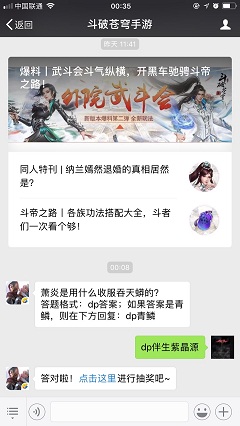 萧炎是用什么收服吞天蟒的?斗破苍穹微信公众号11月12号的每日一题答题玩法题目已经更新,相信还有许多小伙伴都还不知道今天的正确答案玩法,别着急,小面小编带大家看下正确的答案,希望对大家有帮助。斗破苍穹手游11月12日一题题目萧炎是用什么收服吞天蟒的?答题格式:dp答案;如果答案是青鳞,则在下方回复