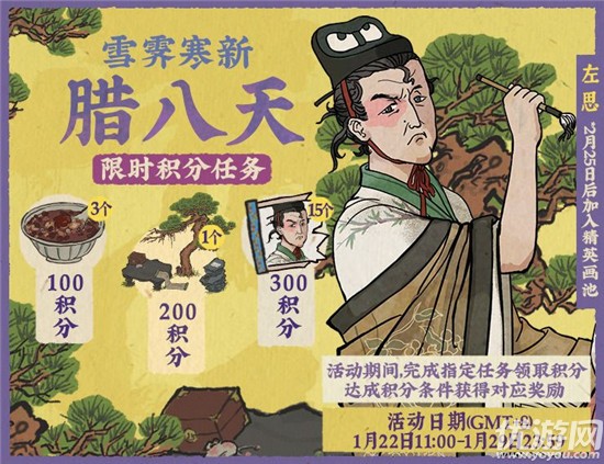 江南百景图腊八天限时积分任务怎么做?江南百景图“雪霁寒新腊八天”限时积分活动已经开启,玩家只需完成指定任务即可获得积分兑换奖励,下面就是腊八天积分任务完成攻略了,一起来看看吧!江南百景图腊八天限时积分任务怎么做雪霁寒新腊八天,限时积分任务活动即将开启!【活动时间】1月22日11:00—1月29日23