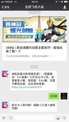 战机武直10的驾驶员是?战机武直10是游戏中玩家经常使用的,所以对于战机武直10的各种信息和技能玩法相信小伙伴们都非常熟悉,赶紧在微信公众号上回答正确答案领取奖励吧。2018全民飞机大战9月20日一题问题战机武直10的驾驶员是?(答题格式:FJ+答案)2018全民飞机大战9月20日一题答案答案:fj