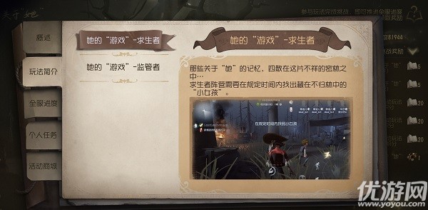 第五人格关于她活动怎么玩?【关于她】是全新角色「小女孩」的预热活动,玩法非常简单就是躲猫猫,只要找到小女孩的位置就行。下面就是第五人格关于她玩法攻略了,有兴趣的小伙伴们都来看看吧!第五人格关于她活动怎么玩活动核心游戏的关键在于开局是否藏好小女孩,监管者开局150s是可以透视小女孩和求生者位置的,监管