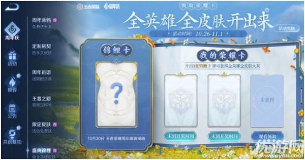 王者荣耀锦鲤卡怎么获得?「锦鲤卡」是六周年【盛典锦鲤】活动中的兑换道具,这种卡片是通过“荣耀卡”翻牌获取的,可以用来兑换全部英雄皮肤。下面就是王者荣耀锦鲤卡获取方法和奖励说明了,大家一起来看看吧!王者荣耀锦鲤卡怎么获得1、进入王者荣耀,在首页打开右侧的活动;2、打开周年庆活动,在活动列表中进入盛典锦
