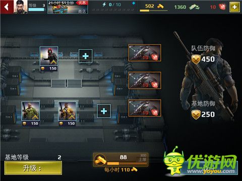 炽热狙击SniperFury怎么玩;炽热狙击SniperFury基地玩法详解;其实该游戏的本源基本离不开钱这个字,不仅做任务需要钱来升级武器,更是具现到买子弹的钱都需要玩家掏,所以“基地”玩法无非也就是一个钱字。依照目前来看个人基地貌似除了能产出金条之外就没有其他用处了,但是对于打算长期玩下去的玩家