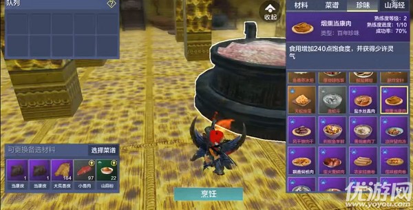 妄想山海烟熏当康肉怎么做?【烟熏当康肉】是游戏中新增的百年珍味菜谱,宠物食用后不仅可以增加饱食度和灵气,还有机会提高资质哦!那么这道菜要怎么做呢?下面就是妄想山海烟熏当康肉配方介绍了,一起来看看吧!妄想山海烟熏当康肉怎么做【配方介绍】烟熏当康肉=当康皮+当康皮+大荒兽皮+小兽肉+山蒜粉烟熏当康肉是百