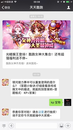 银河接力赛中可以重复使用的是什么?天天酷跑各种模式玩法相信许多玩家都经常挑战,今天的公众号答案玩法都是关于游戏中各种玩法的熟悉程度,正确的答案玩法就和小编一起看下吧。2018天天酷跑11月11日一题题目银河接力赛中可以重复使用的是什么?2018天天酷跑11月11日一题答案(答题小秘诀:仔细查看游戏中
