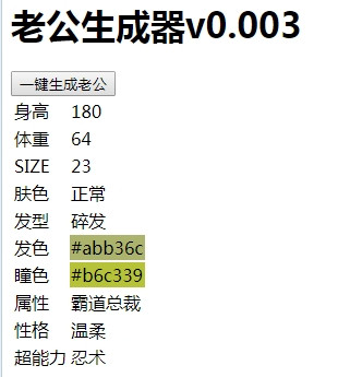 老公生成器在哪玩,老公生成器在11.27日直接飙上微博热搜榜,相信不少小伙伴都好不知道老公生成器是做什么用的吧,不清楚老公生成器玩法地址的小伙伴别着急,小编这就带大家看下老公生成器玩法地址分享。老公生成器玩法地址分享操作简单我们只要点击一键生成就可以生成一位包括“身高,体重,CUP,肤色,发型,发色