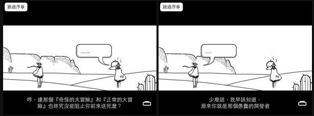 继《奇怪的大冒险》和《正常的大冒险》都被咱们的主角呕心沥血的踏平后,现在又推出了新作品《比较简单的大冒险》这充满各种陷阱、假象的世界又再次出现,千万不能以平常的心态去看待这个世界,可别天真的以为这个游戏真的比较简单。开场当然少不了互相叫嚣的…新手导引这游戏本来就不正常,猜不赢绝对是正常的啊!恭喜你终