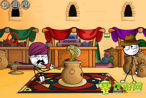 火柴人VS贱鬼脸第21关怎么过?火柴人VS贱鬼脸第21关如何才能通关?关于4399火柴人VS贱鬼脸第21关的详细过关方法就来看看下面小编为大家带来的攻略吧:更多攻略请戳》》火柴人VS贱鬼脸全关卡图文通关攻略大全这一关很简单,把图示位置的葫芦丝找出来就过关了。
