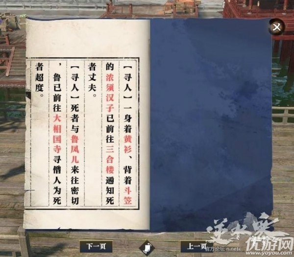 逆水寒汴河谜案任务怎么做,汴河谜案是游戏中的一大支线任务,相信不少小伙伴都还不清汴河谜案任务的玩法,别着急,小编这就为大家分享下逆水寒探索汴河谜案任务攻略解析,一起看看吧!逆水寒探索汴河谜案任务攻略解析首先我们先根据线索来到三合楼找到死者的丈夫吴大眼。(坐标709,389)询问过后在去大相国寺找到死