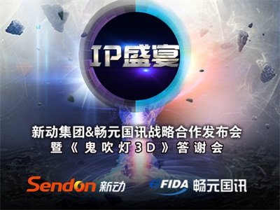 7月28日,上海卓美亚喜马拉雅酒店大宴会厅,国内黑马游戏发行商新动集团举办战略合作发布会&暨《鬼吹灯3D》答谢会,宣布携手中国领先的版权综合服务商畅元国讯,并推出100个以上优质IP,并推出亿元IP专项扶持基金,建立两万平米IP孵化园区,打造最全面、最完整的IP及手游生态链。图1:发布会主视
