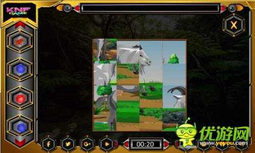 4399救援受困的小狐狸攻略、接下来和小编一起看看主图的树杆上有图形提示。狐狸的左下角有填数字的地方,三个三角形的右上角有一片黄色的树叶,拼图的右下方有英文FOX。过关在笼子那里有个输入数字的地方。