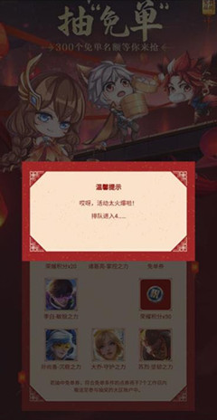今日,很多王者荣耀玩家在参与组队消费抽免单活动时都无法正常进入,对此系统还会弹出温馨提示,内容是“哎呀,活动太火爆啦!排队进入4……”这种情况该如何处理呢?下面就是组队消费抽免单排队进入解决方法了,一起来看看吧!王者荣耀组队消费抽免单无法参与怎么办由于参与组队消费抽免单活动的召唤师太多,导致部分玩家