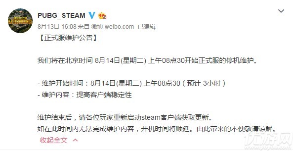 绝地求生8月14日游戏怎么登录不了,好多小伙伴都在反应8.14游戏登不了,登录进不去怎么办,是不是在维护更新,小编这就带着大家一起来看看绝地求生8.14日游戏登录进不去解决办法。绝地求生8月14日游戏怎么登录不了【正式服维护公告】我们将在北京时间8月14日(星期二)上午08点30开始正式服的停机维护