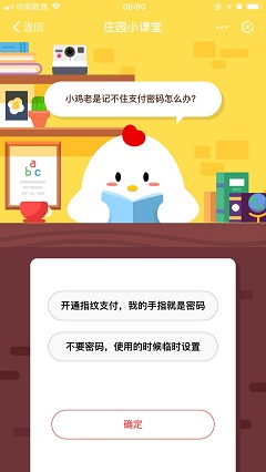 小鸡老是记不住支付宝密码怎么办?支付宝小鸡捐赠活动玩法正在火热进行当中,许多用户每天都在体验着孵化小鸡收取爱心,今天的答案都是关于支付宝的各种玩法。庄园小课堂11月23答案小鸡老是记不住支付宝密码怎么办?开通指纹支付,我的手指就是密码不要密码,使用的时候临时设置正确答案:开通指纹支付,我的手指就是密