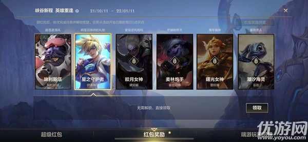 英雄联盟手游超级红包领不了怎么办?lol手游在10月11日到1月11日期间开启了【峡谷新程】活动,玩家有机会领取6个超级红包,下面就是编编为大家整理的lol手游峡谷新程领取方法了,大家都来看看编编的攻略吧!英雄联盟手游超级红包领不了怎么办超级红包4个要自己分享出去,1个要从好友那领取,1个从王俊凯那