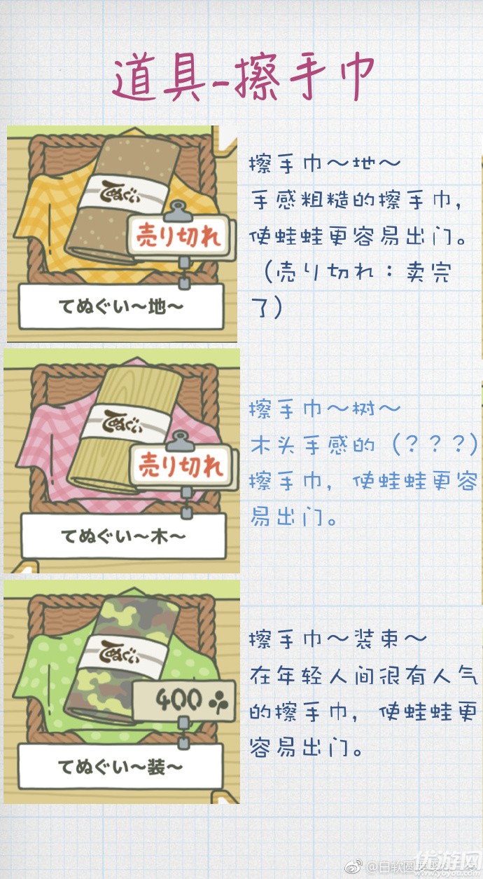 旅行青蛙道具擦手巾有什么作用?道具擦手巾作用详解、是不是有好多小伙伴不知道,那些还不知道的小伙伴快来和小五一起看看擦手巾地容易让蛙出门擦手巾树使蛙更容易出门擦手巾装束