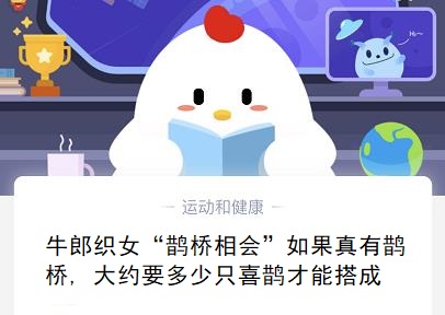 牛郎织女“鹊桥相会”,如果真有鹊桥,大约要多少只喜鹊才能搭成?24万只、34亿亿只。这是支付宝蚂蚁庄园8月25日庄园小课堂的题目,小伙伴们知道这道题的正确答案是哪一个选项吗?下面就让我们一起来看看吧!蚂蚁庄园8月25日每日一题答案问题:牛郎织女“鹊桥相会”,如果真有鹊桥,大约要多少只喜鹊才能搭成?2