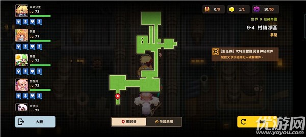 坎公骑冠剑噩梦9-4村镇郊区怎么过?这个关卡中只有一枚黄碎片需要收集,但必须和警长兑换触发剧情,接着完成把广场做对称的任务,这样就能获取碎片了。下面就是坎公骑冠剑噩梦9-4全收集攻略,一起来看看吧!坎公骑冠剑噩梦9-4村镇郊区怎么过1:9-4关卡小地图2:黄碎片位置获取方法(共计1个)(1)先来图示