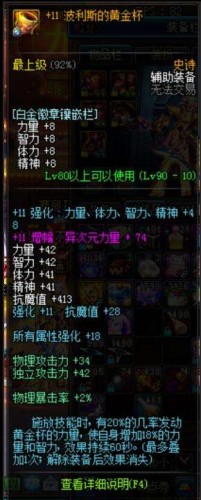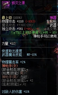 dnf毁灭之源怎么样;dnf毁灭之源属性详解;攻击力还可以,附加属性就一个,这个是白字,不会冲突。